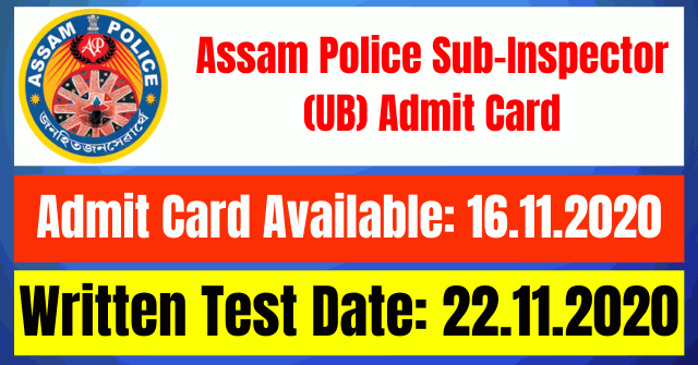 Assam Police SI Admit Card, Written Test for the Recruitment for Sub-Inspector (UB) in Assam Police has been rescheduled for 22nd November 2020. It is further notified that the duration of the Written test shall be 2(two) hours and the Test will be from 12 pm to 2 pm.