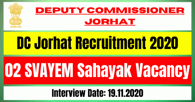 DC Jorhat Recruitment 2020, Application for inviting Walk-In-Interview from the intending candidates for temporary engagement for the post of SVAYEM Sahayak on Contractual Basis for a period of 06 (Six) months at fixed pay under the ‘Re-Svayem Scheme’.